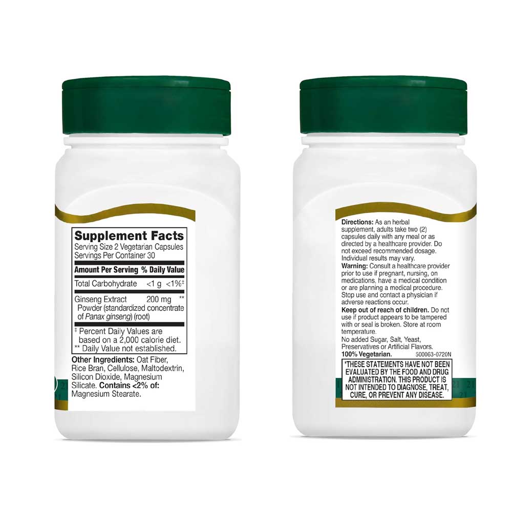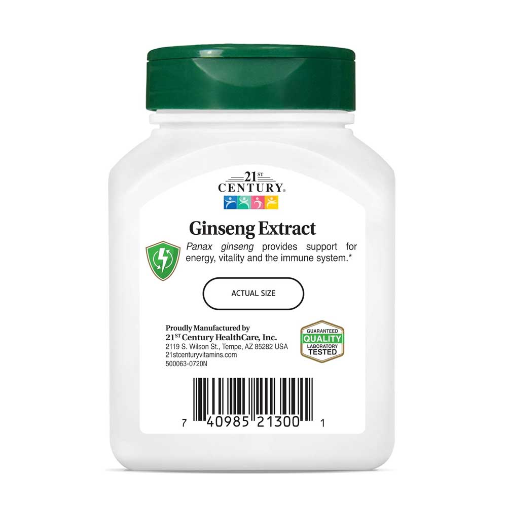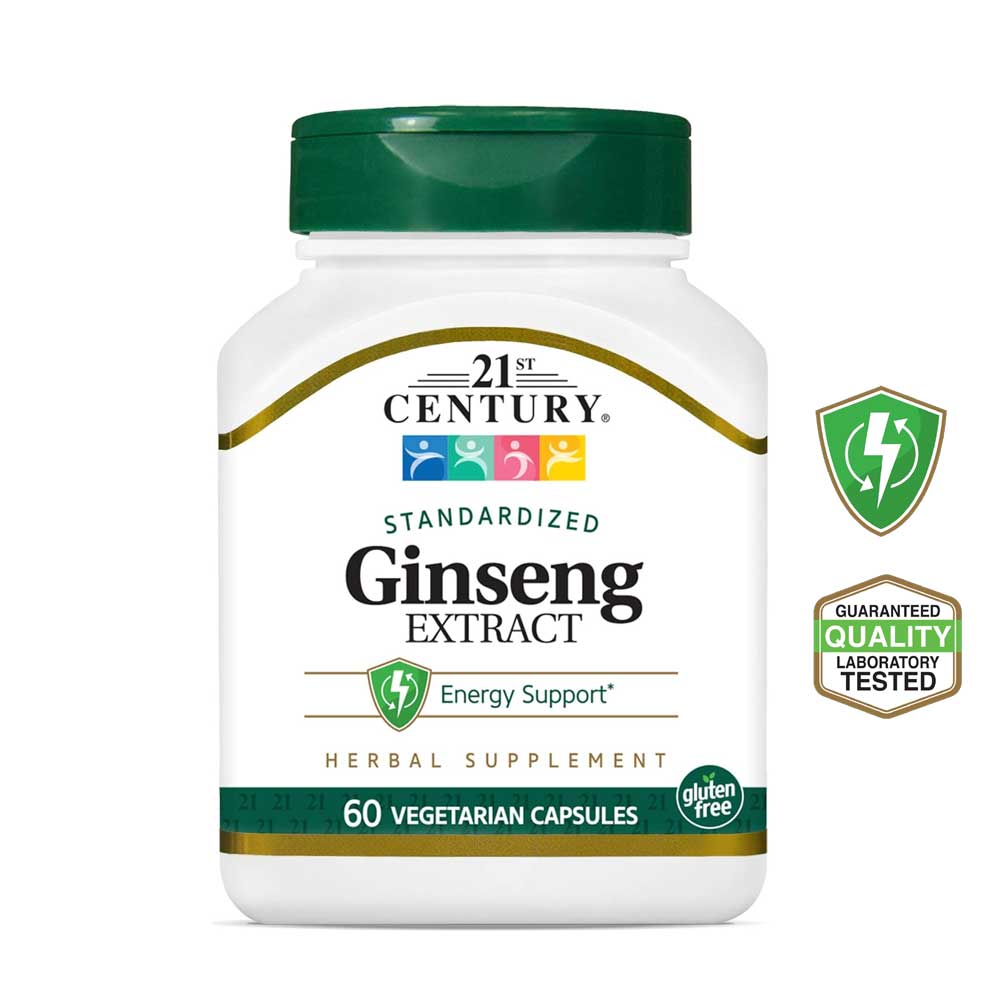 Buy 21st Century Ginseng Extract 60 Capsules online from Cellsii. Energy & vitality support Herbal Supplement gluten free guaranteed quality laboratory tested 100% Vegetarian Ginseng provides support for energy and vitality. Panax Ginseng Extract contains naturally occurring ginsenosides and flavonols.