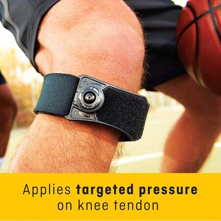 Buy 3M Futuro knee custom pressure strap adjustable firm support online from Cellsii.com. It provides targeted pressure to the tendon below the kneecap (Patella) designed to help relieve symptoms of Chondromalacia (irritated kneecap) or tendonitis of the knee. Turning the dial lowers the pad to apply up to 3X more pressure on the tendon and enables pressure to be increased or decreased without adjusting the entire strap.