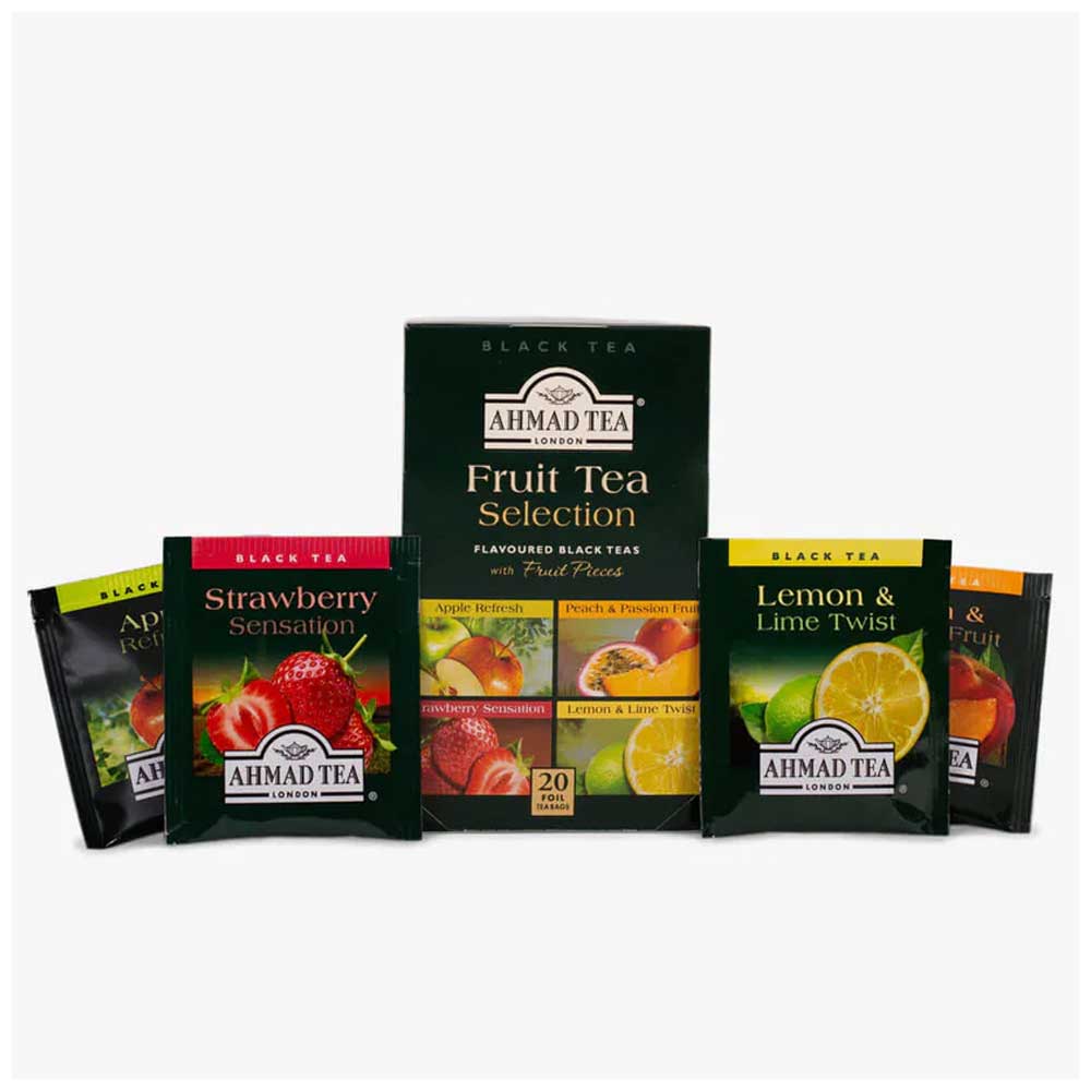 Buy Ahmed Tea Fruit Selection with Fruit Pieces Tea Bag 20pcs online in Bangladesh from Cellsii. Ahmad Tea Fruit Selection is a delightful assortment of fruity teas crafted to provide a refreshing and aromatic experience. This selection combines premium tea leaves with real fruit pieces and natural flavors to create a vibrant and flavorful cup. Each box contains a variety of blends, offering something for every mood and occasion.