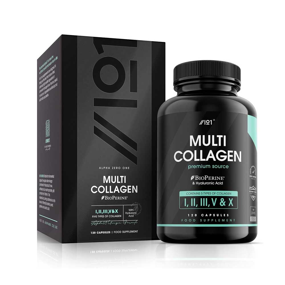 Buy Alpha Zero One Multi Collagen Essential Proteins 120 Tablets online from Cellsii. Multi Collagen formula contains hydrolysed collagen from 100% grass-fed and pasture-raised bovine, wild farmed deep-sea fish, free-range chicken and eggshell membrane. In addition to delivering five different types of collagen, these high protein capsules contain 80mg (100% NRV) of vitamin C in every serving.