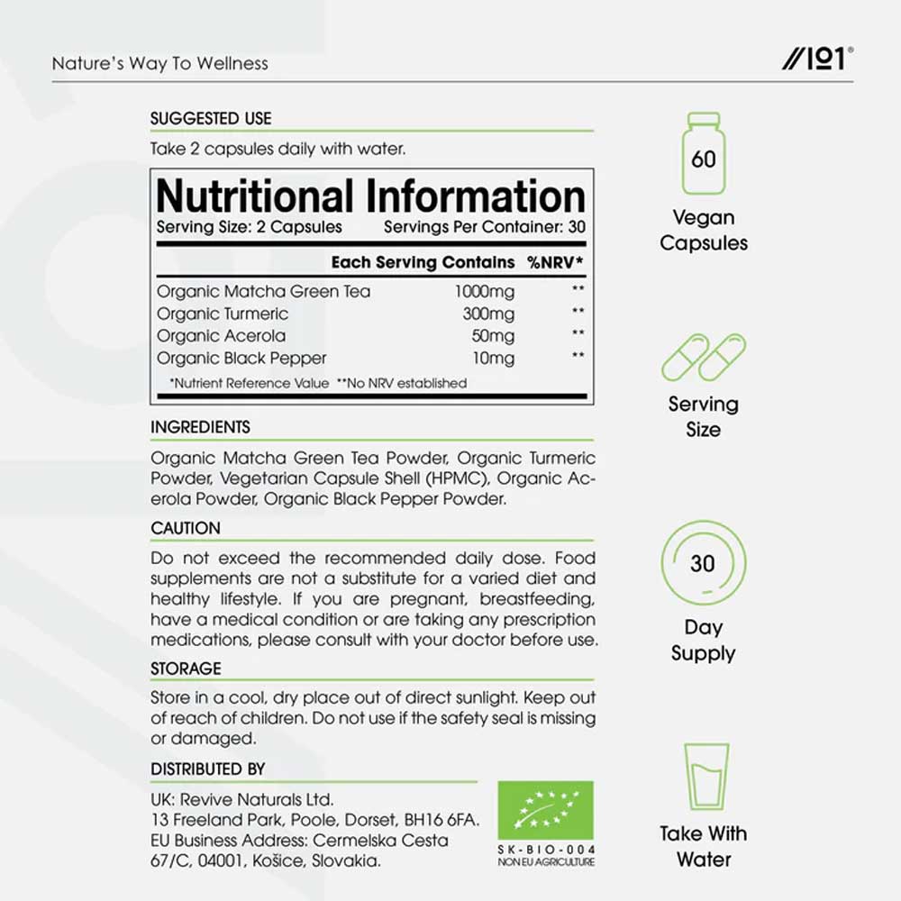 Buy Alpha Zero One Organic Matcha Green Tea+ 60 Tablets online from Cellsii. Matcha green tea with a storehouse of vitamins! Combined with Turmeric, Acerola, and Black Pepper, this supplement contains a wide range of potent antioxidants. This supplement is made from premium ingredients sourced in Britain and meets all food safety requirements.