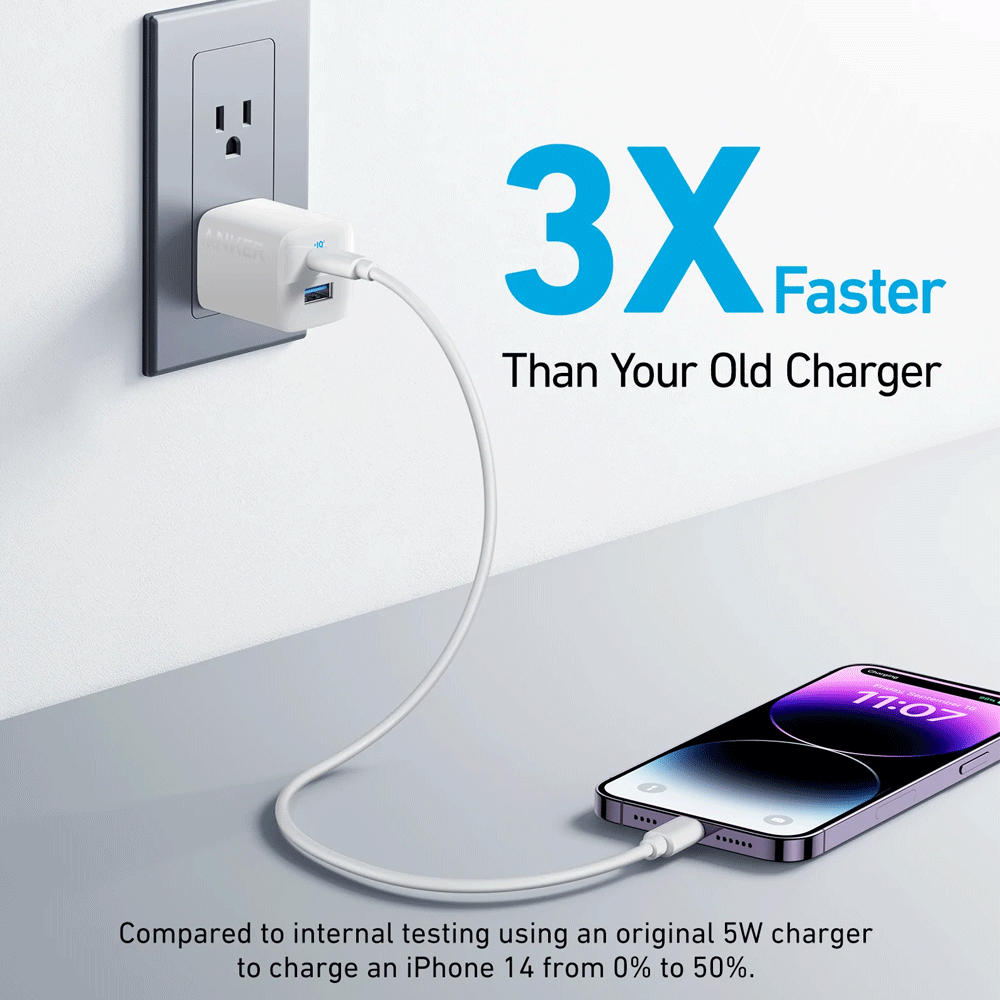 Buy Anker 323 USB C 2 Port Charger 33W online from Cellsii.com. Equipped with a 33W USB-C Power Delivery port to charge phones, tablets, and more up to 3 times faster than with an original charger. With both a USB-C port and a USB-A port, you can now charge up to 2 devices simultaneously. Features an ultra-small foldable design perfect for carrying in your bag.