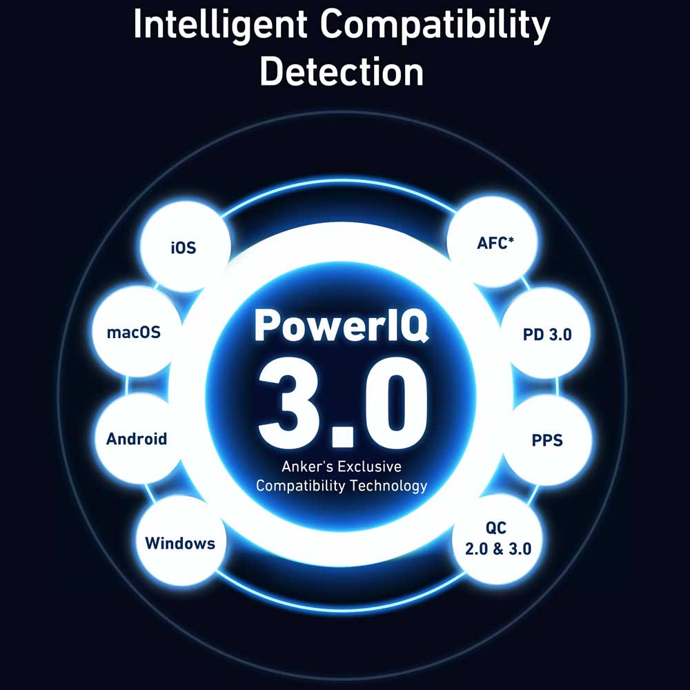 - Triple Port: USB-C 1 (45W Max), USB-C 2 (30W Max), USB-A (18W Max)