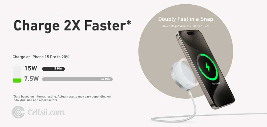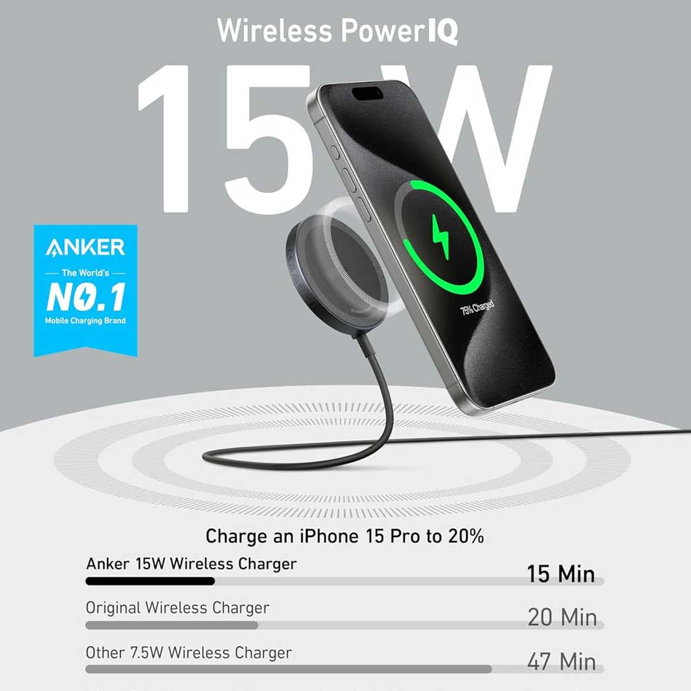 - Charge 2X Faster: Anker MagGo magnetic charger with it's Wireless PowerIQ is the most intelligent wireless fast charging system which can charge iPhone magnetically at twice the speed.