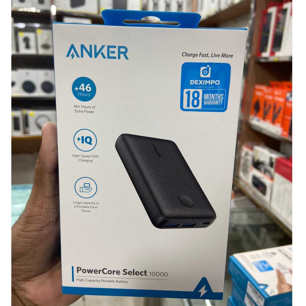 Buy Anker PowerCore select 10000mAh power bank online price in Bangladesh from Cellsii.com. Anker PowerCore Select 10000mAh Power Bank is made of durable rubberized polycarbonate and is shock resistant. The device has just two USB output connectors with a total amperage of 4.8 A and a maximum power of 12 watts. The battery itself is charged from the power source using the microUSB port with an input power of 10 watts.