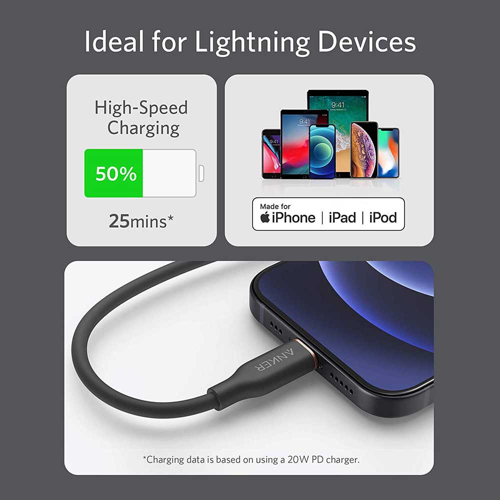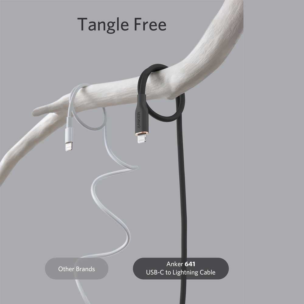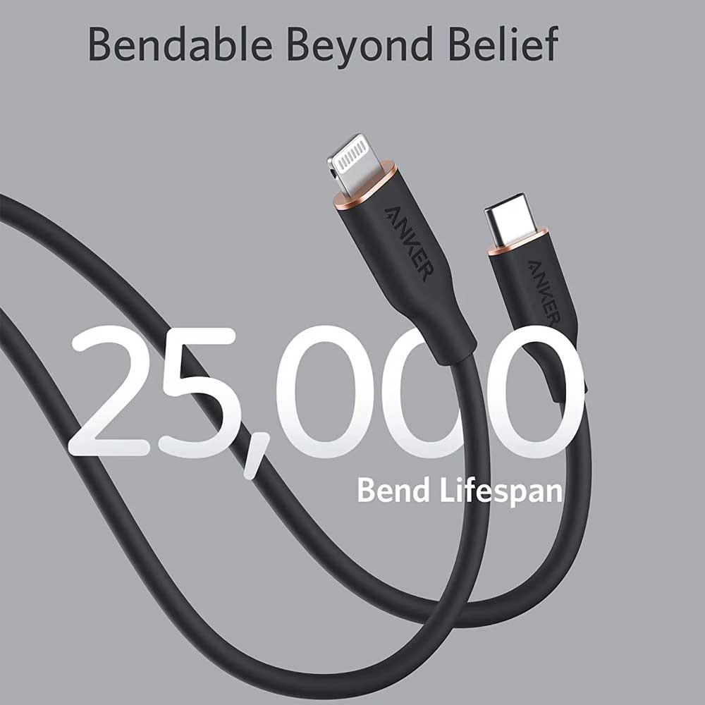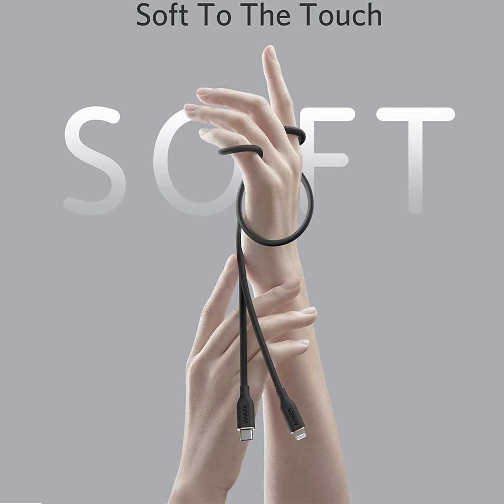 Buy Anker Powerline III Flow Usb C with Lightning Connector online from Cellsii.com. You’ve never felt a cable like this before. The silicone finish feels remarkably soft between your fingers as you plug the cable into your device. Super softest cable ever is also one of our strongest. With a 25,000-bend lifespan, this cable is more than ready to handle the stresses and strains of charging on the go. Remains tangle-free even when stuffed into a bag or pocket, or wrapped around a portable charger.