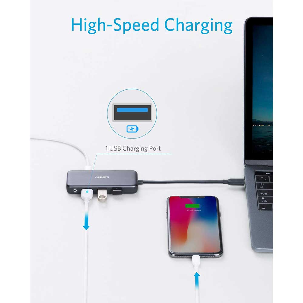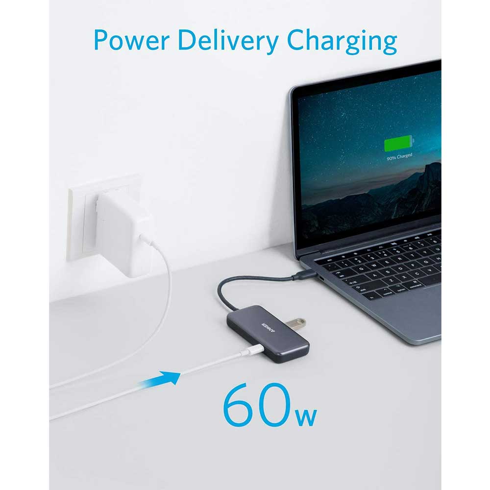 Buy Anker Premium 4-in-1 USB C Hub Adapter online from Cellsii.com. Charge mobile devices, sync data, and connect peripherals—all while giving a high-speed pass-through charge to your MacBook. USB-C Power Delivery supports uninterrupted pass-through charging. Get more done while charging your MacBook, and shatter the limitations of having a single USB-C port.