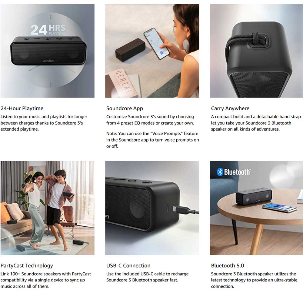 - 24-Hour Playtime: Soundcore 3 Bluetooth speaker is perfect for taking on days out or weekends away thanks to its ultra-long playtime that lets you listen to up to 480 songs on a single charge.