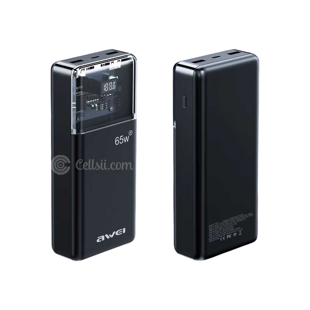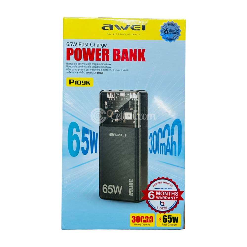 Shop online in Bangladesh, buy Awei P109K 65W Power Bank 30000mAh from Cellsii.com at best price. The Awei P109K 30000mAh PD 65W Fast Charge Power Bank is a high-capacity portable charging solution designed for modern travelers and professionals. With an impressive 65W power delivery output, this power bank ensures fast and efficient charging for laptops, smartphones, tablets, and other devices.