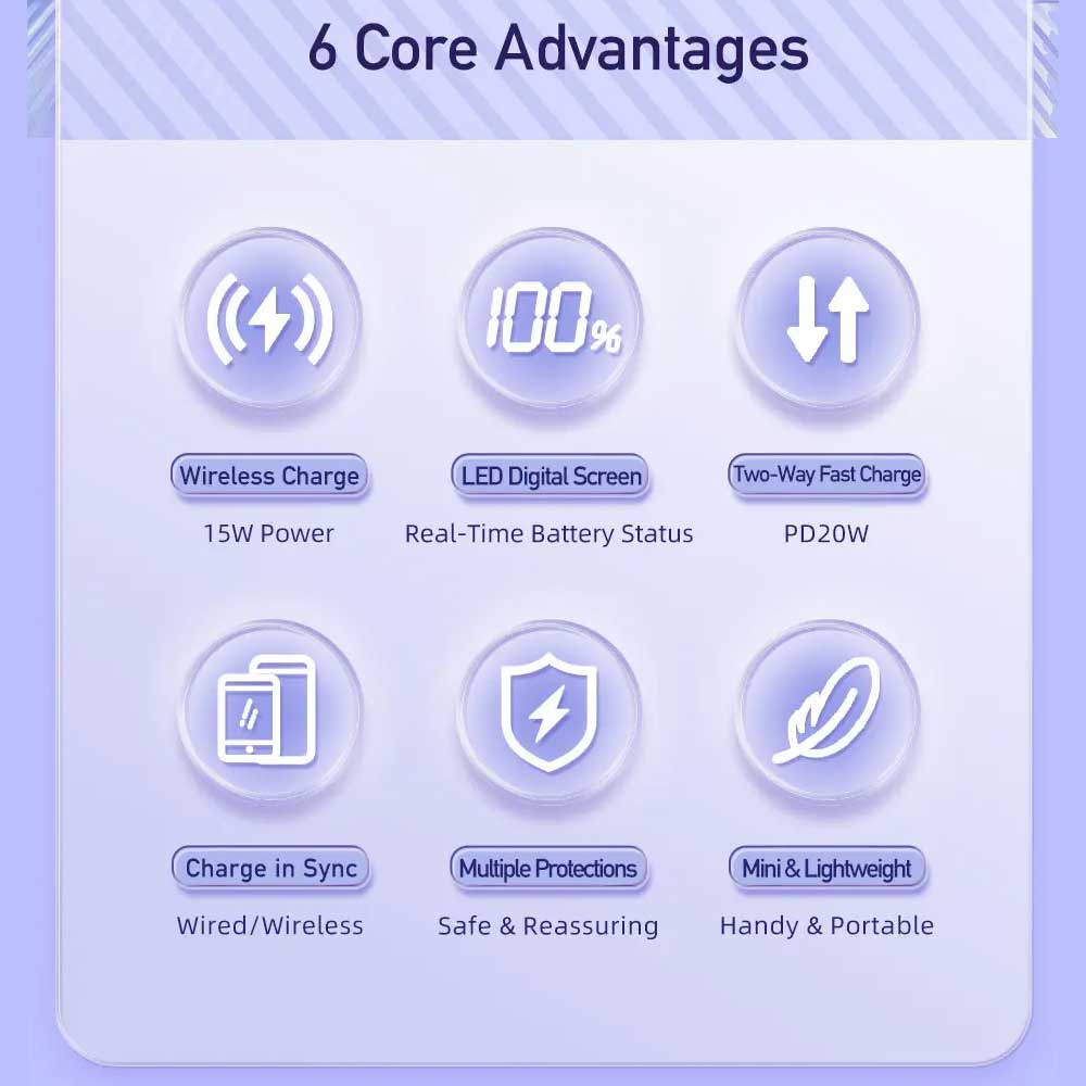 - 20W Fast Charging: Offers fast charging via both wired and wireless modes, ensuring quick power replenishment for your devices.