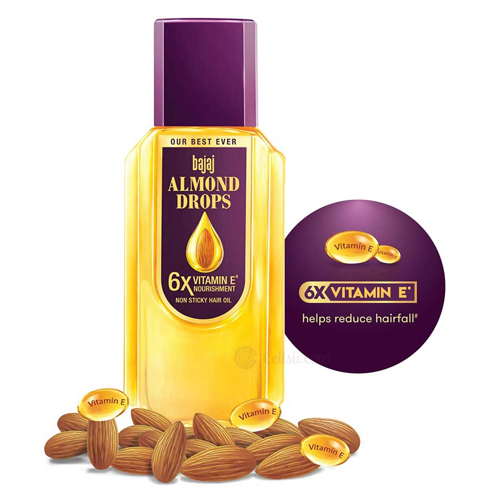Buy Bajaj Almond Drops Hair Oil 200ml online from cellsii.com. Oiling needs no longer be a hassle with the light and non-sticky Bajaj Almond Drops Hair oil. It is enriched with almond oil & 300% Vitamin E to give you strong hair. Almond oil is one of the best hair oils for hair growth. Among the many almond oil benefits, it also helps nourish your scalp and keep it moisturized. It is one of the best non-sticky hair oils to add that glossy sheen to your hair.