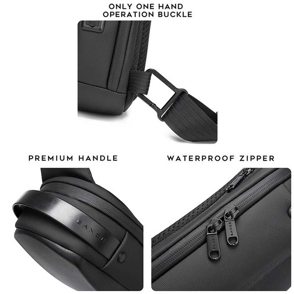 Buy Bange BG-7256 Men's Shell Crossbody Shoulder Bag online in Bangladesh from Cellsii.com. Made of high-quality leather material and hard EVA shell, wear-resistant, splash-proof and durable for long term use. Built in a USB charging port for charging electronic devices via connecting your own power bank during walking, gym, sport, hiking, cycling, travel.