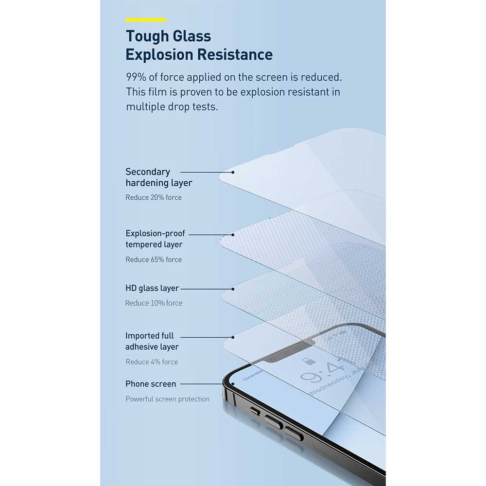Buy Baseus 0.3mm Tempered Glass Film Screen Protector for iPhone 13/13 Pro/13 Pro Max 2pcs online from Cellsii.com. This is oil-repellent coating, anti-fingerprint and keep from being greasy, making your screen clear and clean. Tempered with high aluminum silicate made of high alumina-silica glass, fit with full screen, anti-explosion and anti-falling.