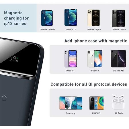 - Powerful Security System: The safety system of Baseus magnetic battery pack includes multi-protection, such like overcharge, short circuit, reset, high temperature etc. And provide a dedicated wireless charging indicator to remind if charging wirelessly.