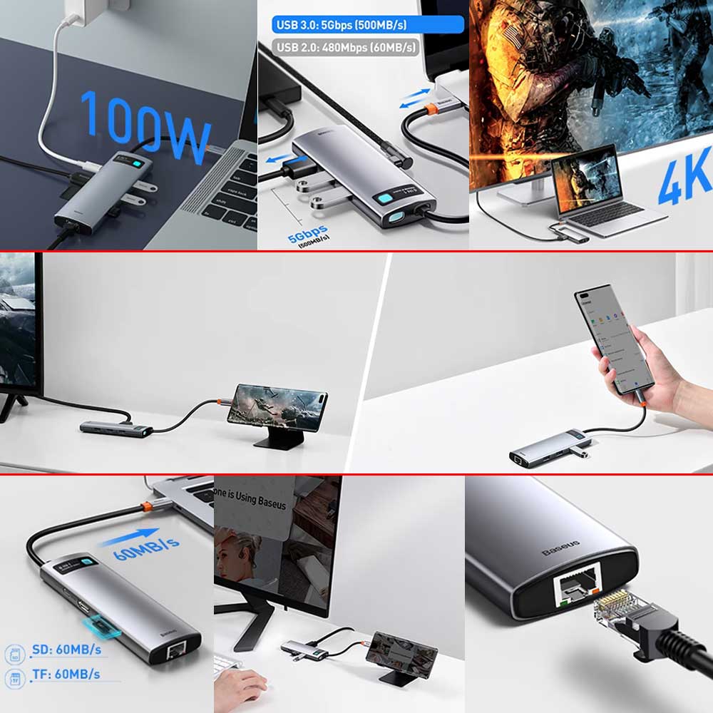 Shop online in Bangladesh, buy Baseus 8 in 1 Type-C Hub Adapter from Cellsii.com at best price. The Baseus 8 in 1 Starjoy 8 Port Type-C Hub Adapter is a versatile and multifunctional device designed to expand the connectivity options of your Type-C enabled devices, such as laptops, tablets, and smartphones.