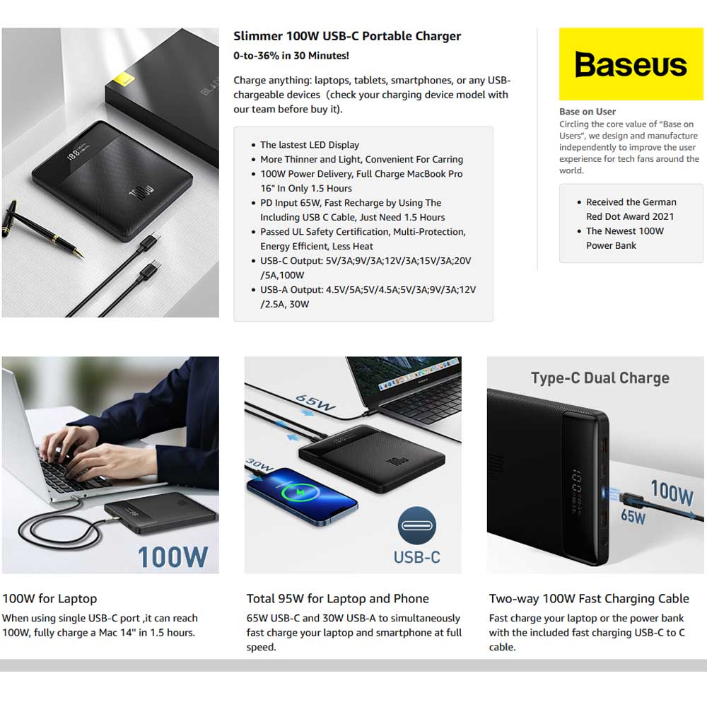Buy Baseus Blade 100W Power Bank 20000mAh Type C PD  in Bangladesh from Cellsii.com at best price.Connect some of the top-selling laptops, phones, gaming devices, wireless headsets, smart watches and bands.Keep your work going through the day or connect multiple devices instead of being tied to an office or outlet.