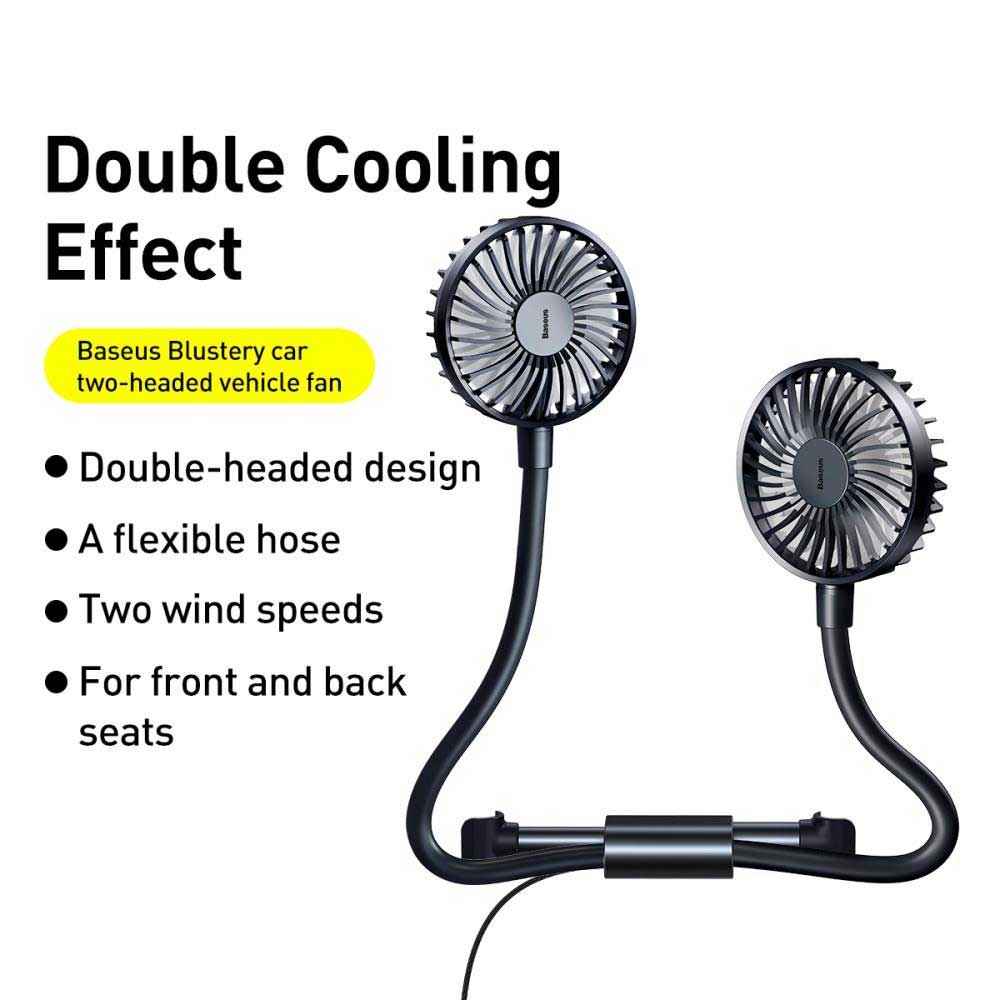 Buy Baseus Blustery Car Two-headed Vehicle Fan online from Cellsii.com. It is double-headed design, double cooling effect, Creative double-headed design allows two fans to work together for double cooling effect. It is 360° adjustment, The flexible hose can be blended at any angles to blow wind to any corners.