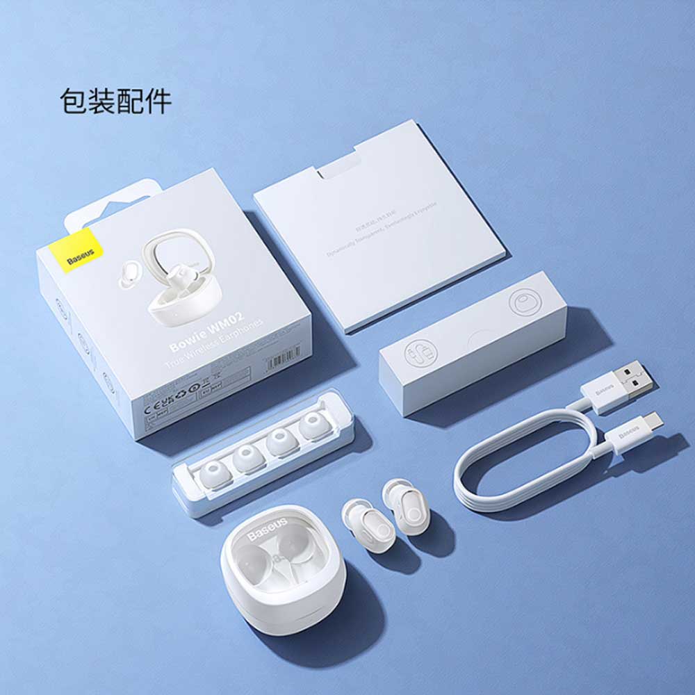 Buy Baseus Bowie WM02 TWS Wireless Earphones online from Cellsii.com. Bring positive vibes anywhere, thanks to the Baseus Bowie WM02 wireless headphones.  This model features a compact case with a transparent lid that showcases the lightweight earbuds while they're charging. Meanwhile, the Bluetooth v5.3 technology ensures minimal delay, improved battery life, and excellent audio quality for both music and calls.