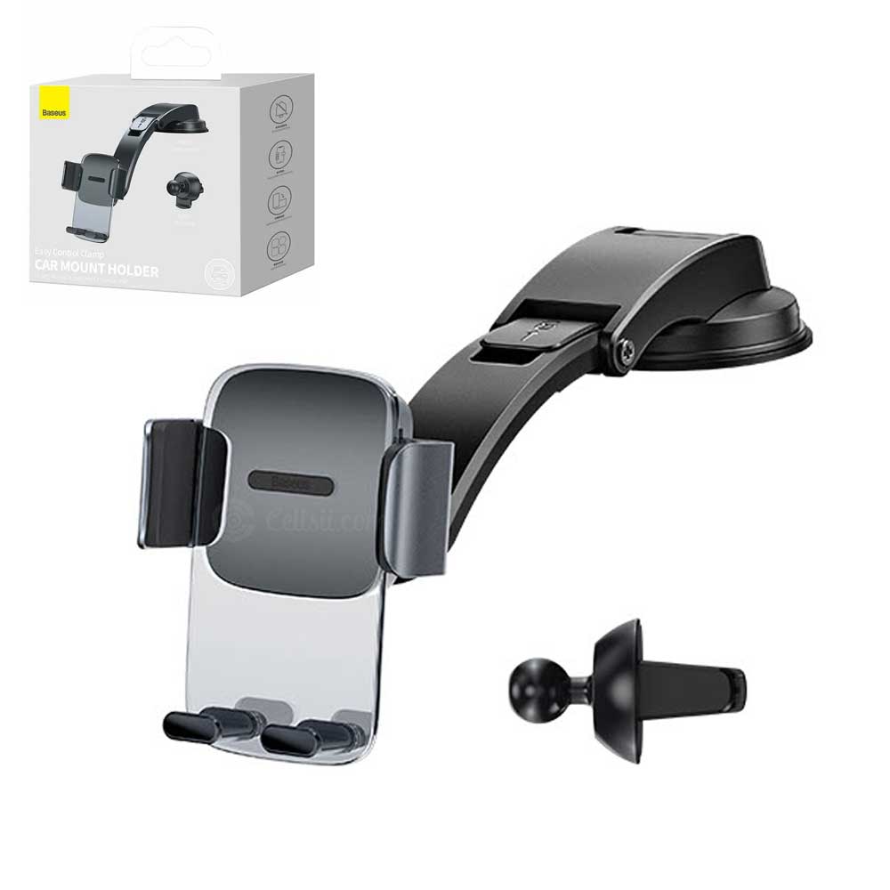 Buy Baseus Easy Control Clamp Car Mount Holder online from Cellsii.com. The folding pole in the kit has streamline design without blocking sight. A heavy damping pivot is adjustable in height for stability and wide field of view. The new mounting kit includes accessories for mounting on air vents and dashboards.