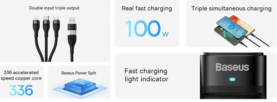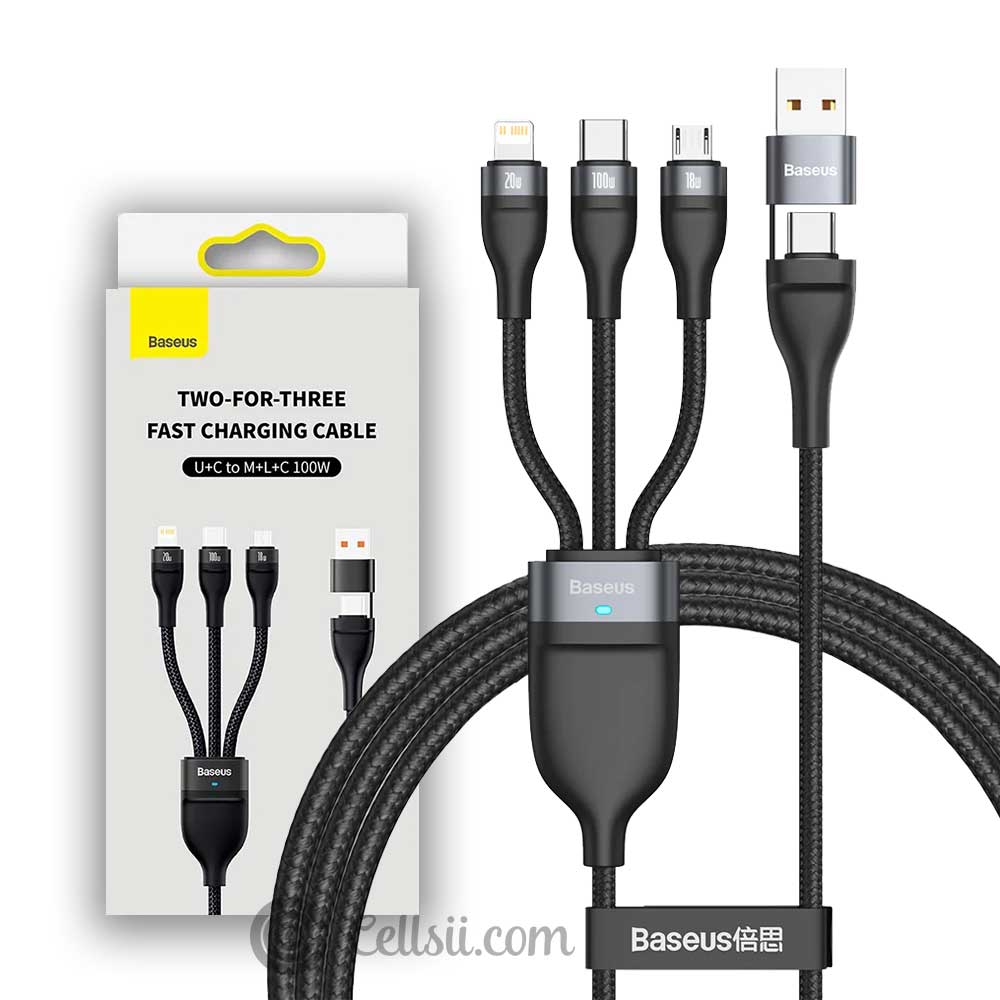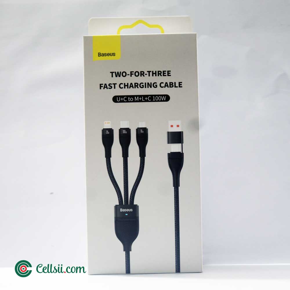 Buy Baseus Flash Series Ⅱ Two for Three Fast Charging Cable online in Bangladesh from Cellsii.com at best price. This Baseus cable is equipped with 3 output ports and a dual input port, so you can charge 3 devices simultaneously and save time. It also supports 100W fast charging and stands out for its wide compatibility and solid workmanship.