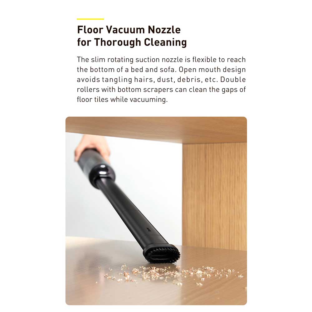- The slim rotating suction nozzle is flexible to reach the bottom of a bed and sofa open mouth design avoids tangling hairs, dust, debris, etc. Double rollers with bottom scrapers can clean the gaps of floor tiles while vacuuming