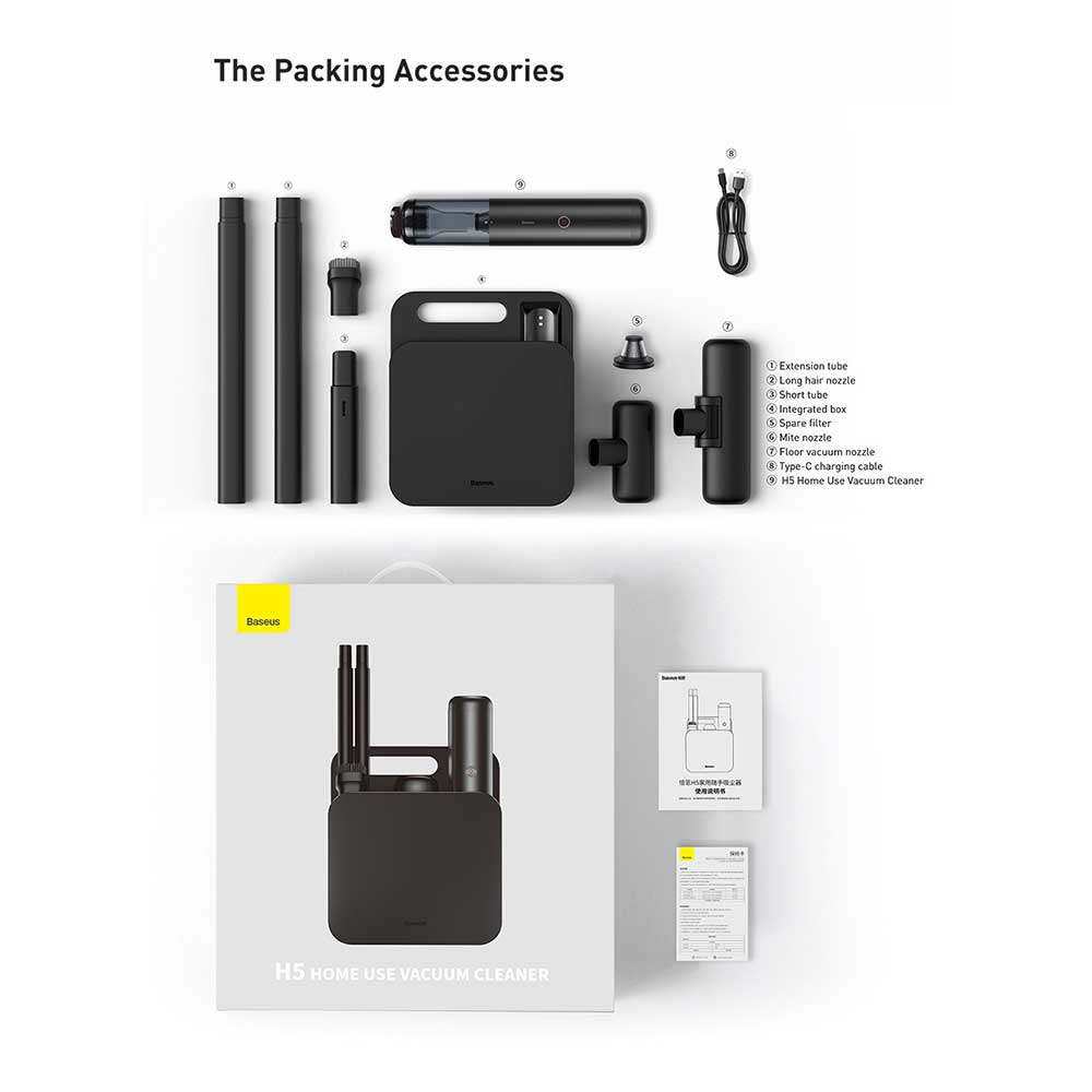Buy Baseus H5 Home Use Wireless Vacuum Cleaner online from Cellsii.com. It is one of the best home use vacuum cleaner. Its integrated box can perfectly store all accessories. Its long hair nozzle, mite nozzle, floor vacuum nozzle, extension tube are suitable for different needs for home cleaning. A slim and compact body is easy to hold for a long time. The cordless design makes it more convenient to use.