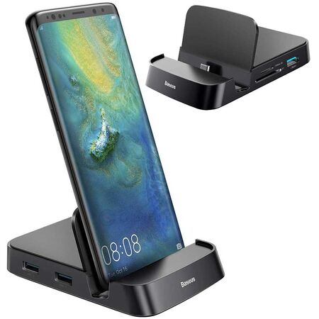 Buy Baseus Mate Docking Type-C Mobile Phone Intelligent Hub online from Cellsii.com. Baseus USB Type C hub docking station is a great office helper, combination of a docking station and a phone holder. It adds three USB ports to your phone, so you could easily connect many devices to it at the same time, like a computer. There are two connection modes for the USB HUB - Computer mode and TV mode. For computer mode, it can split screen operations of the phone. For TV mode, it can synchronous disply of the phone and TV. With a large screen, it offers a more exciting gaming and video experience.