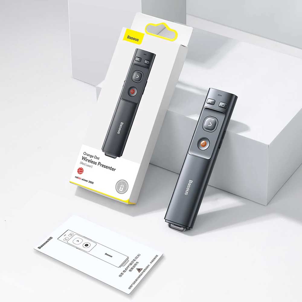 Buy Baseus Orange Dot Wireless Presenter Red Laser online in Bangladesh from Cellsii.com. Baseus model name ACFYB-0G is a Wireless presenter USB C laser pointer with remote control infrared system. Bluetooth pointers of this device can be unreliable and finicky, but with the all new Baseus Laser Pointer, you can simply plug in the USB wireless adapter, connect, and impress your audience with your new seamless presentation skills. So the Baseus Orange Dot wireless presenter is an excellent choice for teachers, professors, and meeting presenters.