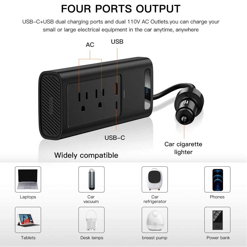 - Name: Baseus In-car Inverter 150W (110V US/JP)