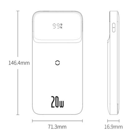 Buy Baseus PPCXW10 Magnetic Wireless Power Bank 10000mAh online from Cellsii.com. The magnetic wireless charger is for iPhone 12 series, and with USB-A Quick Charge and Type-C Power Delivery output, you can charge most modern smartphones. Equipped with a large LED display, you can check the battery status of the Baseus PPCXW10 power bank in real-time. Multiple level protections ensure the safety of your devices while charging.