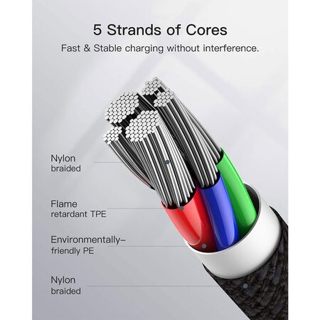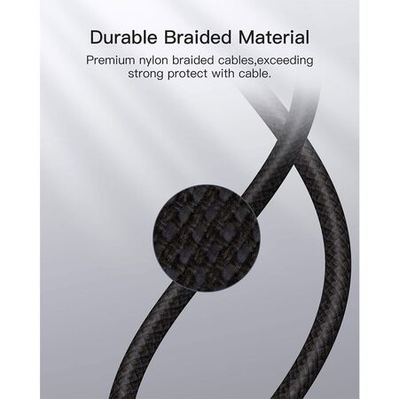 - Durable and Elegant braided Design: Solid and durable nylon braided cable ensures longer service life up to 10,000 bend. Double-sided USB C connectors with overmolded strain relief are designed for frequent insertions. Aluminum alloy housing, high-purity copper wire, triple-shielding will keep long-lasting fast charging performance.