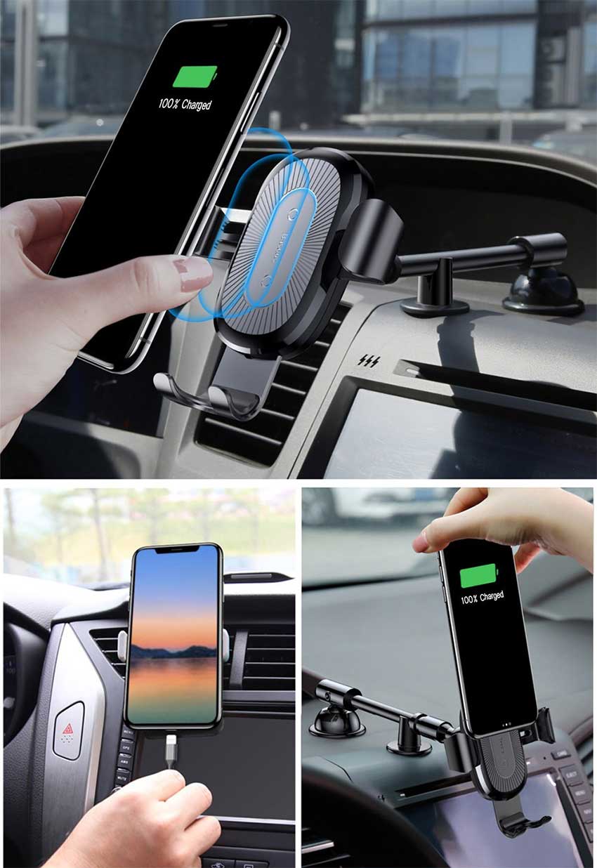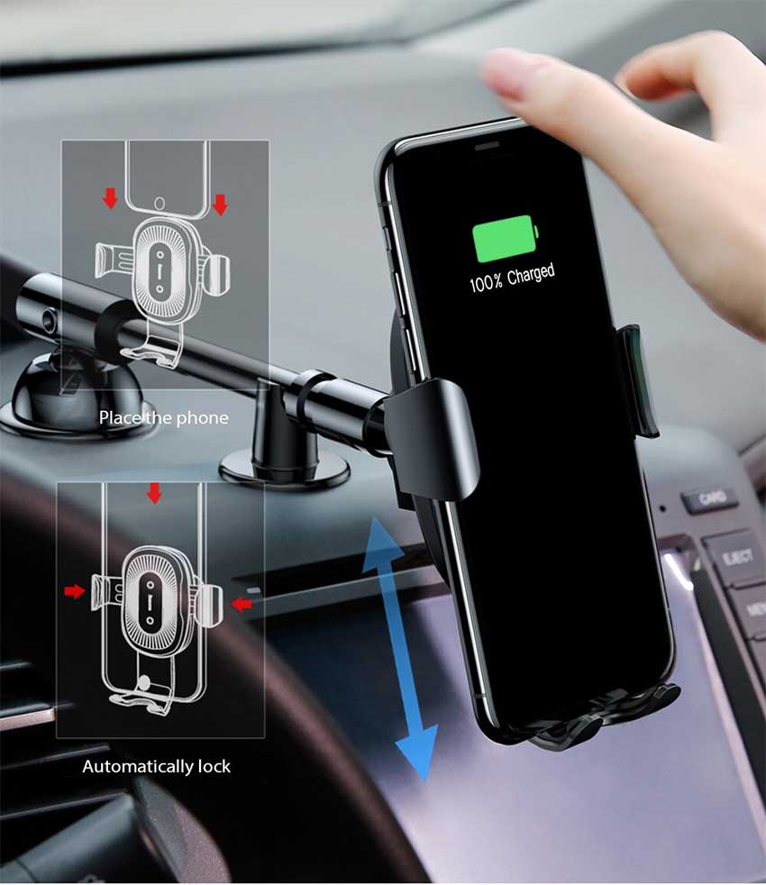 Buy Baseus wireless charger gravity car mount online from Cellsii.com. This is a gravity car mount with fast wireless charger. You just need to put down your phone and it will charge automatically. It has got a very high-quality copper core large coils for uninterrupted power in bumping roads.