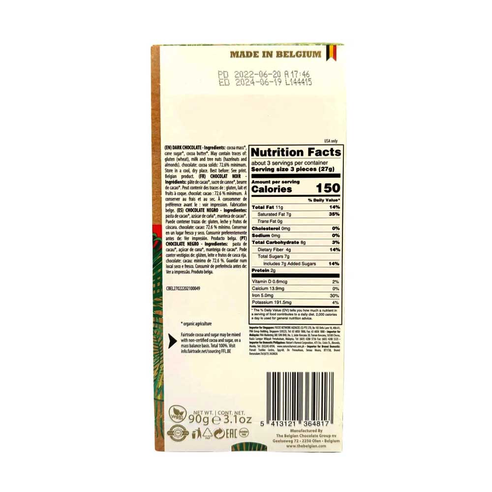 Belgian Organic 72% Cocoa Dark Chocolate 90g