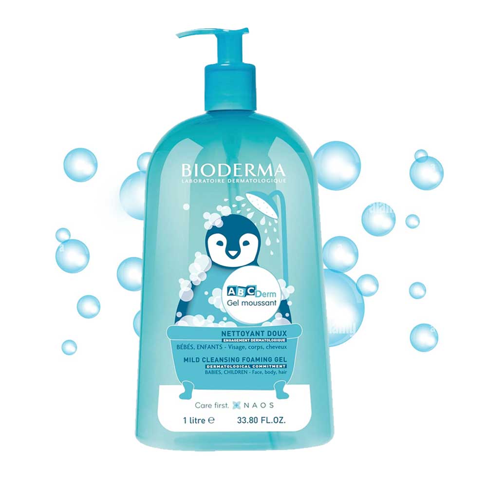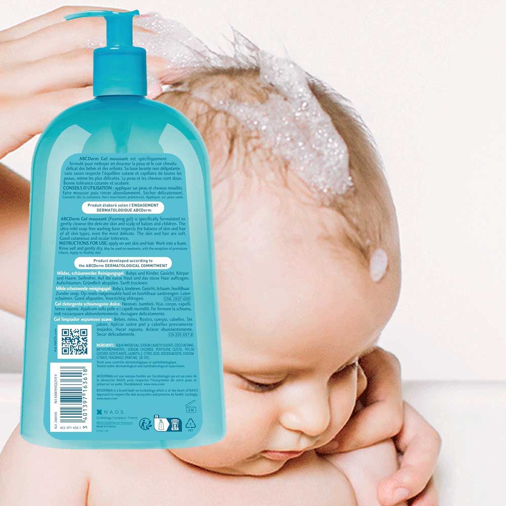 - The mild non-stripping cleansing base of ABCDerm Foaming Gel respects the skin and hair balance of all skin, even the most delicate.