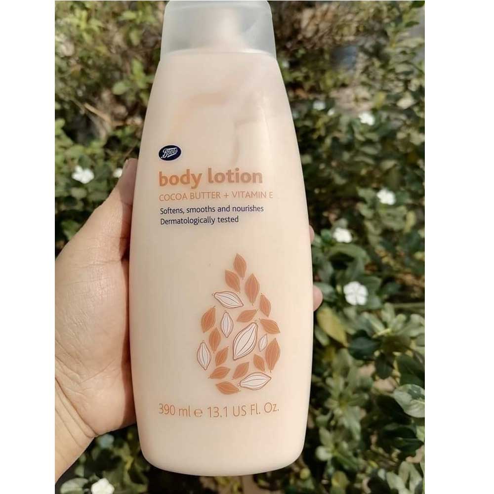 Buy Boots Cocoa Butter + Vitamin E Body Lotion 390ml online in Bangladesh from Cellsii.com. Boots Cocoa Butter & Vitamin E Body Lotion is a moisturizing lotion that is made in the UK and is available in Bangladesh. This lotion is suitable for all skin types, but may be particularly beneficial for those with dry or sensitive skin. This body lotion is enriched with cocoa butter and vitamin E, both of which are known for their moisturizing and nourishing properties.