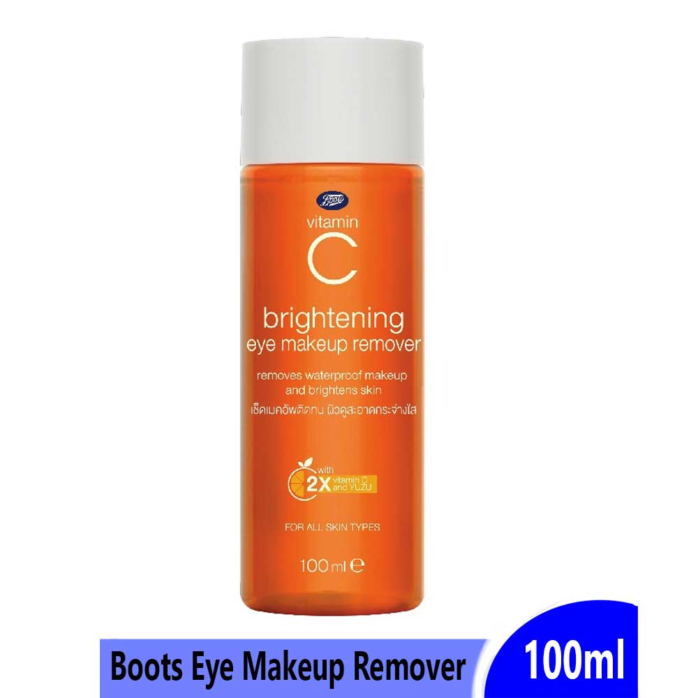 Buy Boots Vitamin C Brightening Eye Makeup Remover 100ml online from Cellsii.com. Boots Vitamin C Brightening Eye Makeup Remover with 2x vitamin C and yuzu extract, this eye makeup remover helps effectively remove eye, lip and waterproof makeup for refreshed and brighter looking skin.