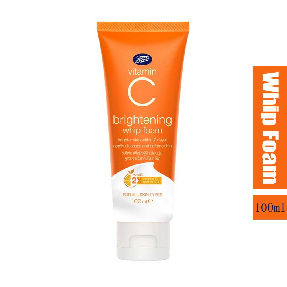 Buy Boots Vitamin C Brightening Whip Foam 100ml online from Cellsii. Formulated with Vitamin C, this refreshing whip foam cleanses deeply yet throughly, leaving skin instantly brightened and energised. A creamy whip texture formula with a sweet citrus aroma instantly lathers into a rich foam that gently clears impurities. Leaving skin looking radiant and glowing.