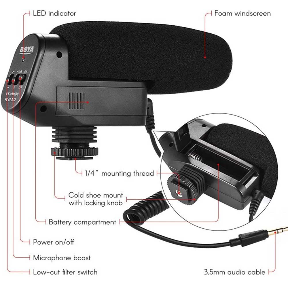 Buy Boya BY-VM600 Shotgun Microphone online in Bangladesh from Cellsii.com at best price. Boya BY-VM600 Microphone 3.5mm Cardioid Directional Condenser Shotgun Video Interview Broadcast Mic for Canon Nikon Sony Pentax dslr camera. Directional shotgun-style microphone captures the audio in your frame while rejecting unwanted background noise. Premium microphone capsule for clear, precise audio.