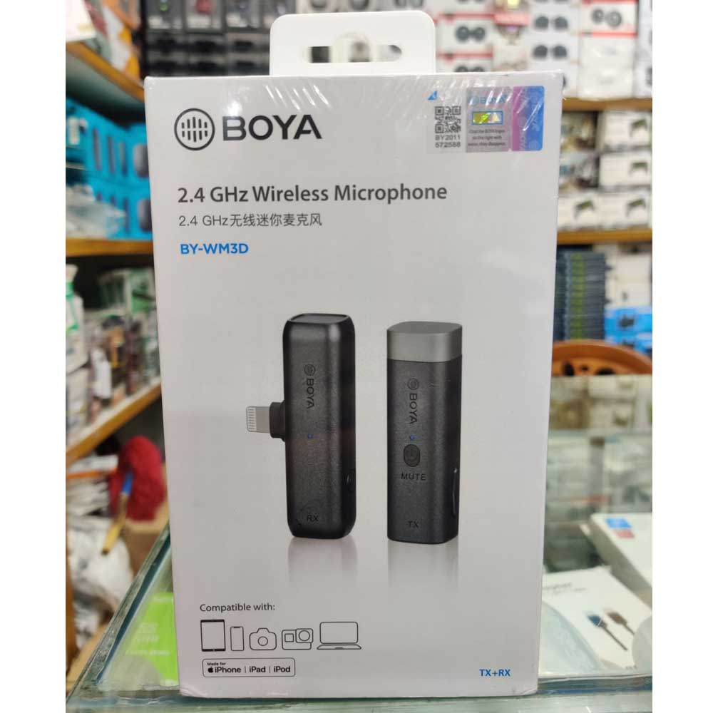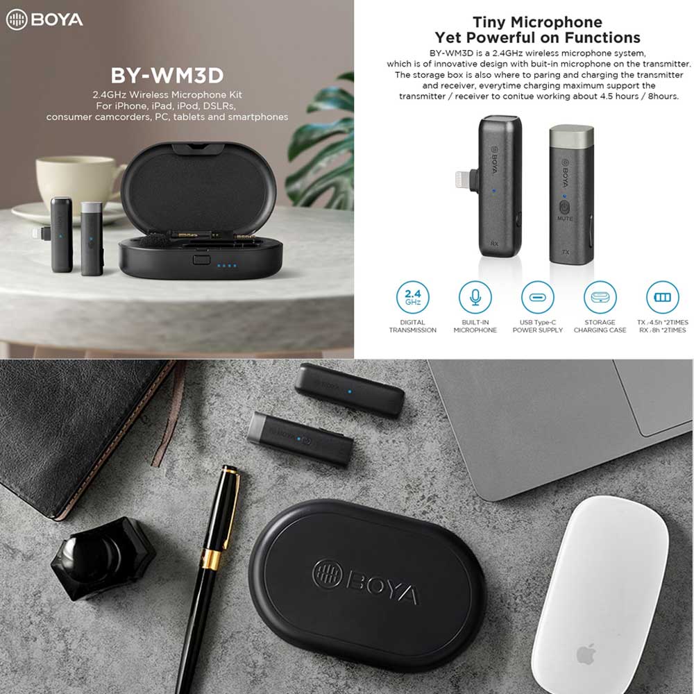 Buy Boya BY-WM3D Omnidirectional Wireless Microphone for iOS online in Bangladesh from Cellsii.com at best price. Boya BY-WM3D is built-in Omnidirectional Wireless Microphone. This microphone comes with 2.4GHz Transmission technology. This Boya microphone features one transmitter and one receiver, both of them are compact and lightweight. This Boya BY-WM3D is extremely compact receiver and transmitter. Here Including charging case for charging and pairing.