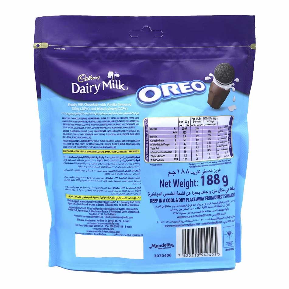 Buy Cadbury dairy milk oreo 188g online from Cellsii.com. This experience Cadbury dairy milk chocolate filled with crunchy Oreo cookie pieces wrapped in a layer of creamy vanilla filling.