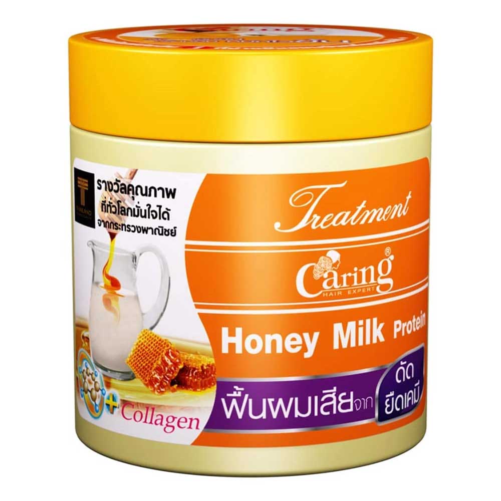 Buy Caring Honey Milk Protein with Collagen Hair Treatment 500ml online from Cellsii.com. It is nourish the hair deeply And restoring the dry, damaged, and frizzed hair to be moisturized, soft, sleek and healthy How to use it After washing the hair every time, nourish with the treatment, massage all over the head from the base to the tip.
