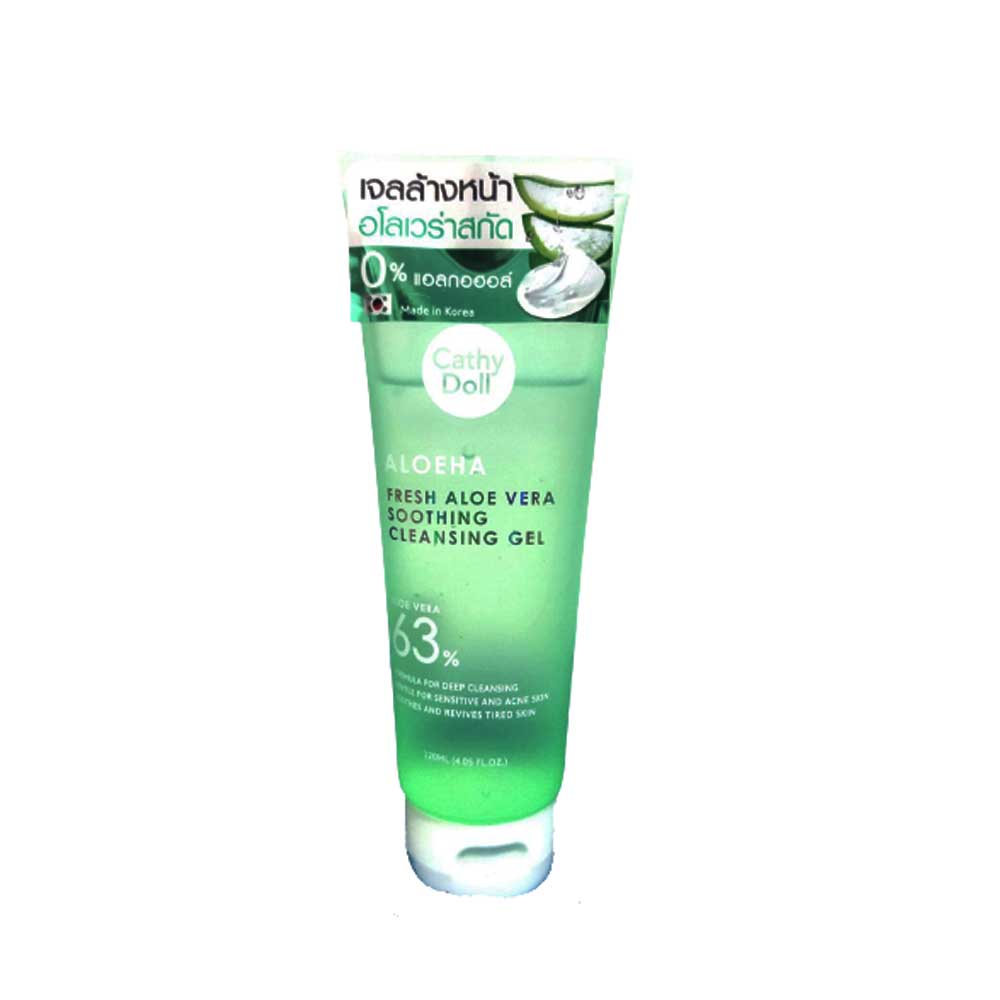Buy Cathy Doll Aloeha Fresh Aloe Vera Soothing Cleansing Gel 120ml online from Cellsii.com. Provides gentle to the skin while cleansing. With cleansing gel enriched with organic aloe vera extract. Cleanse face mildly pollution. It cleanses both the dust and pores of the skin cleanly. Soothes skin with moisture. The skin is bright, elastic, pores and tighten up. And reduce the appearance of redness, redness on the face, wash off easily, leaving no residue that causes acne. Suitable for the skin after sun exposure.