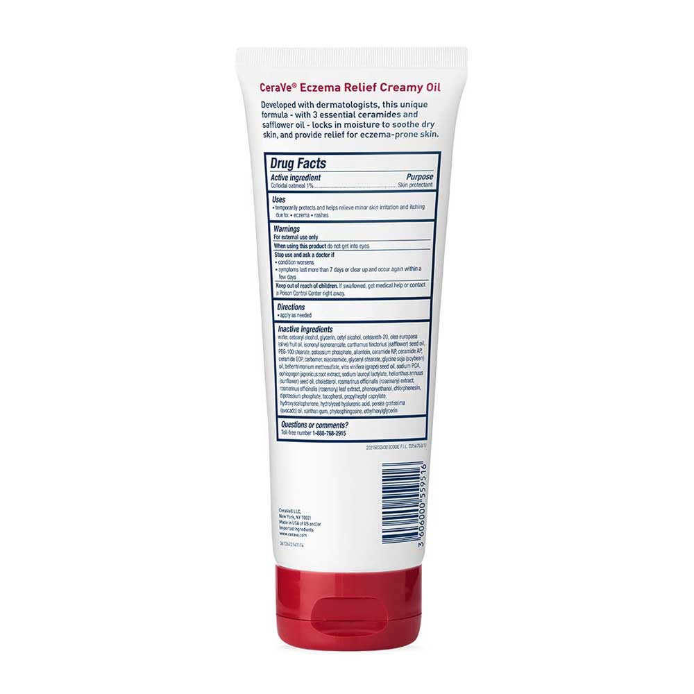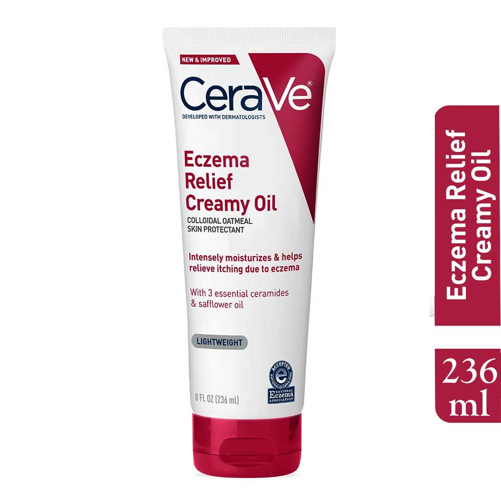 Buy CeraVe Eczema Relief Creamy Oil 236ml online from Cellsii.com. Developed with dermatologists, CeraVe Eczema Relief Creamy Oil is a unique formula with a lightweight feel that moisturizes extra dry, itchy skin. The formula contains Colloidal Oatmeal to help relieve symptoms of eczema, such as dry, itchy, scaly patches of dry skin.