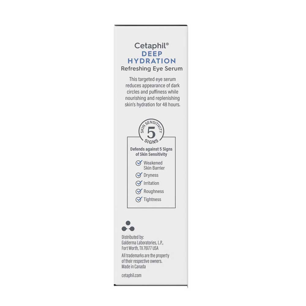 Buy Cetaphil Deep Hydration Refreshing Eye Serum 15ml online in Bangladesh from Cellsii.com. This targeted eye serum reduces the appearance of dark circles and puffy skin for a refreshed look. It also includes hyaluronic acid, peptides, vitamin B5 and antioxidant rich vitamin E to rehydrate and smooth the look of fine lines caused by dryness or dehydration.