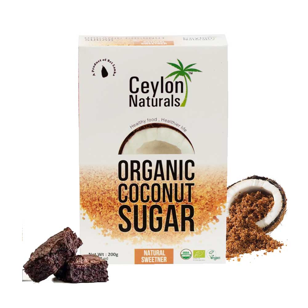Buy Ceylon Naturals Organic Coconut Sugar 200g online from cellsii.com. Ceylon Naturals Organic Coconut Sugar is produced from the sap of the coconut tree harvested from the flower blossoms of organically grown coconut trees in the tropical island of Sri Lanka. In the process of making the coconut sugar, the sap is collected and heated until the water is evaporated, afterwards, it is dehydrated for sugar blocks or crystals to form which is then turned into a final golden-brown sugar.