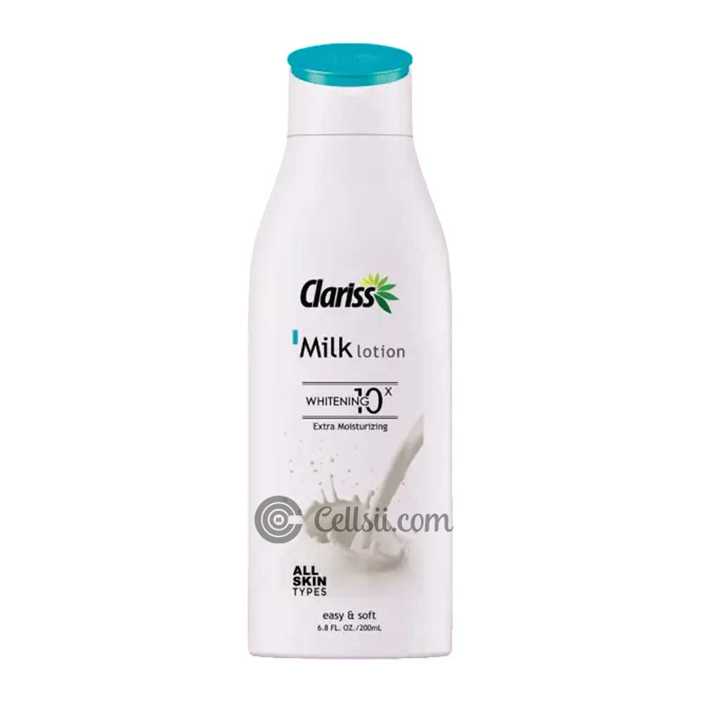 Buy Clariss Whitening 10X Extra Moisturizing Milk Body Lotion 200ml online from Cellsii. The Clariss Whitening 10X Extra Moisturizing Milk Body Lotion is a luxurious skincare solution formulated to hydrate, nourish, and brighten the skin. Enriched with a blend of natural milk extracts and whitening agents, this lotion offers intense moisturization while promoting an even skin tone. Its lightweight, non-greasy texture ensures quick absorption, leaving the skin feeling soft, smooth, and radiant.