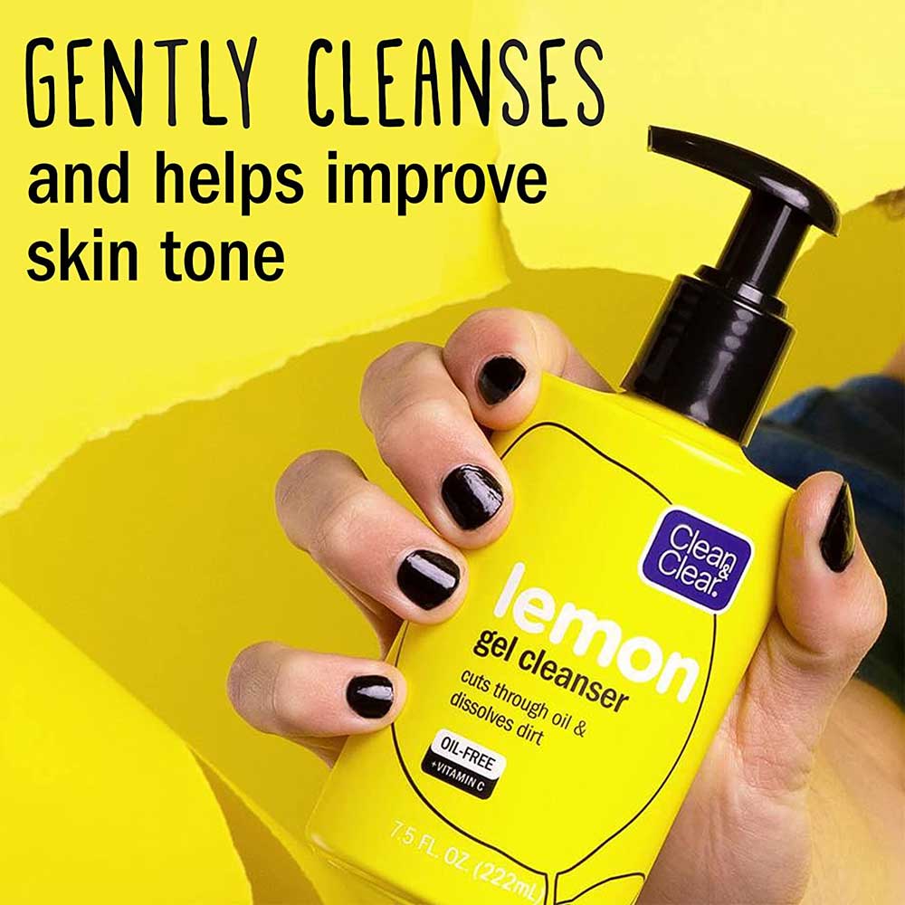 - Pump bottle of Clean & Clear Lemon Gel Facial Cleanser to gently cleanse the skin.