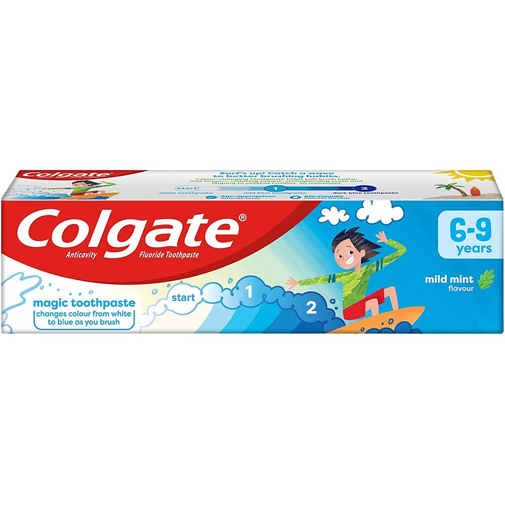 Buy Colgate Mild Mint Flavour Magic Kids Toothpaste 6-9 Years 75ml online from Cellsii.com. Colgate Mild Mint Magic Kids’ Toothpaste 6-9 years changes colour to encourage kids to brush for the right amount of time to help reduce plaque, strengthen teeth and prevent cavities. The kids toothpaste also provides sugar acid protection against cavities through its fluoride formula.