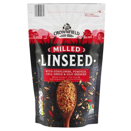 Buy Crownfield milled linseed with sunflower pumpkin, chia seeds and goji berries 225g online in Bangladesh from Cellsii.com. Crownfield Linseed has omega-3 Alpha-Linolenic Acid (ALA) contributes to the maintenance of normal blood cholesterol levels.