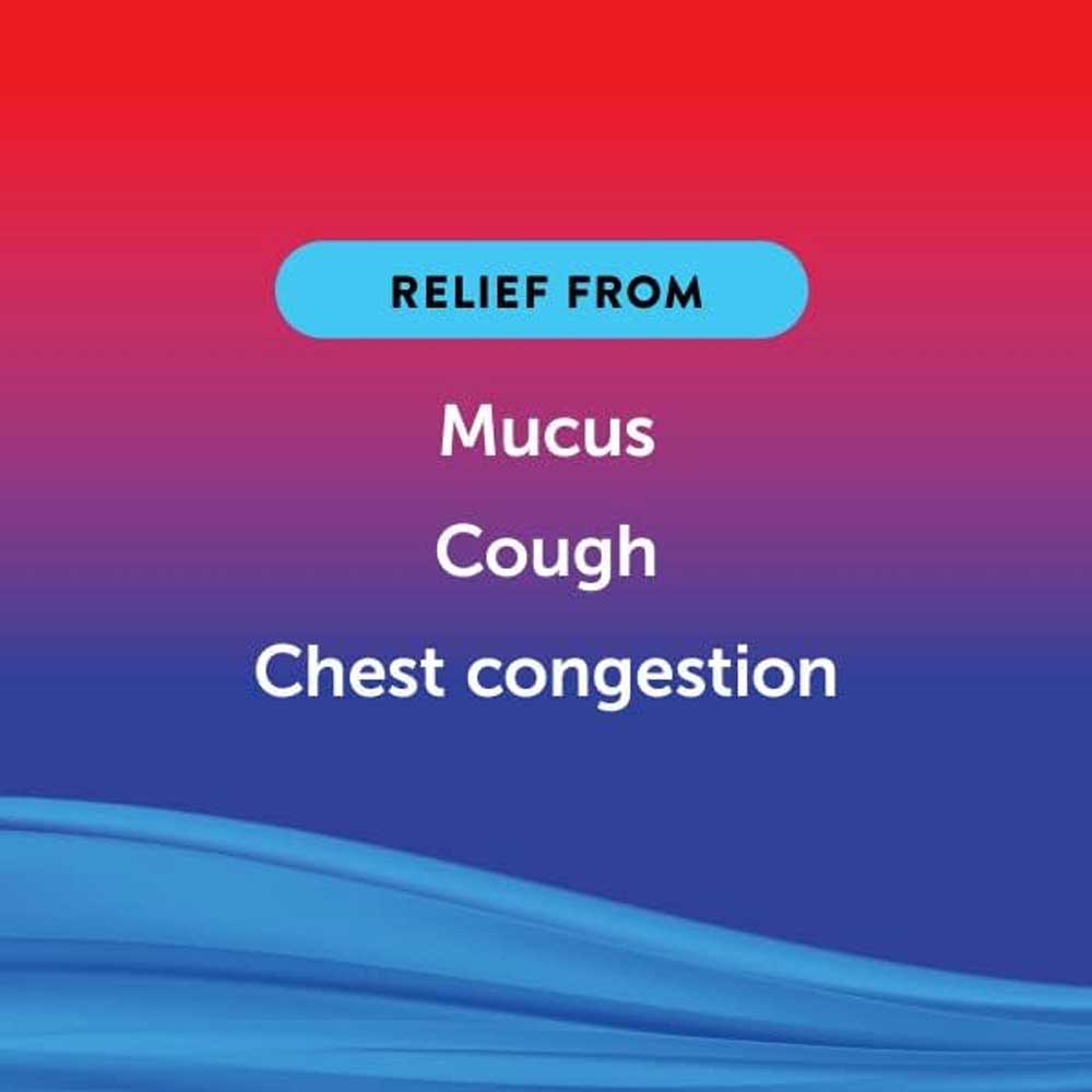 - It provides maximum strength relief from mucus, cough, and chest congestion with a great tasting berry flavor.